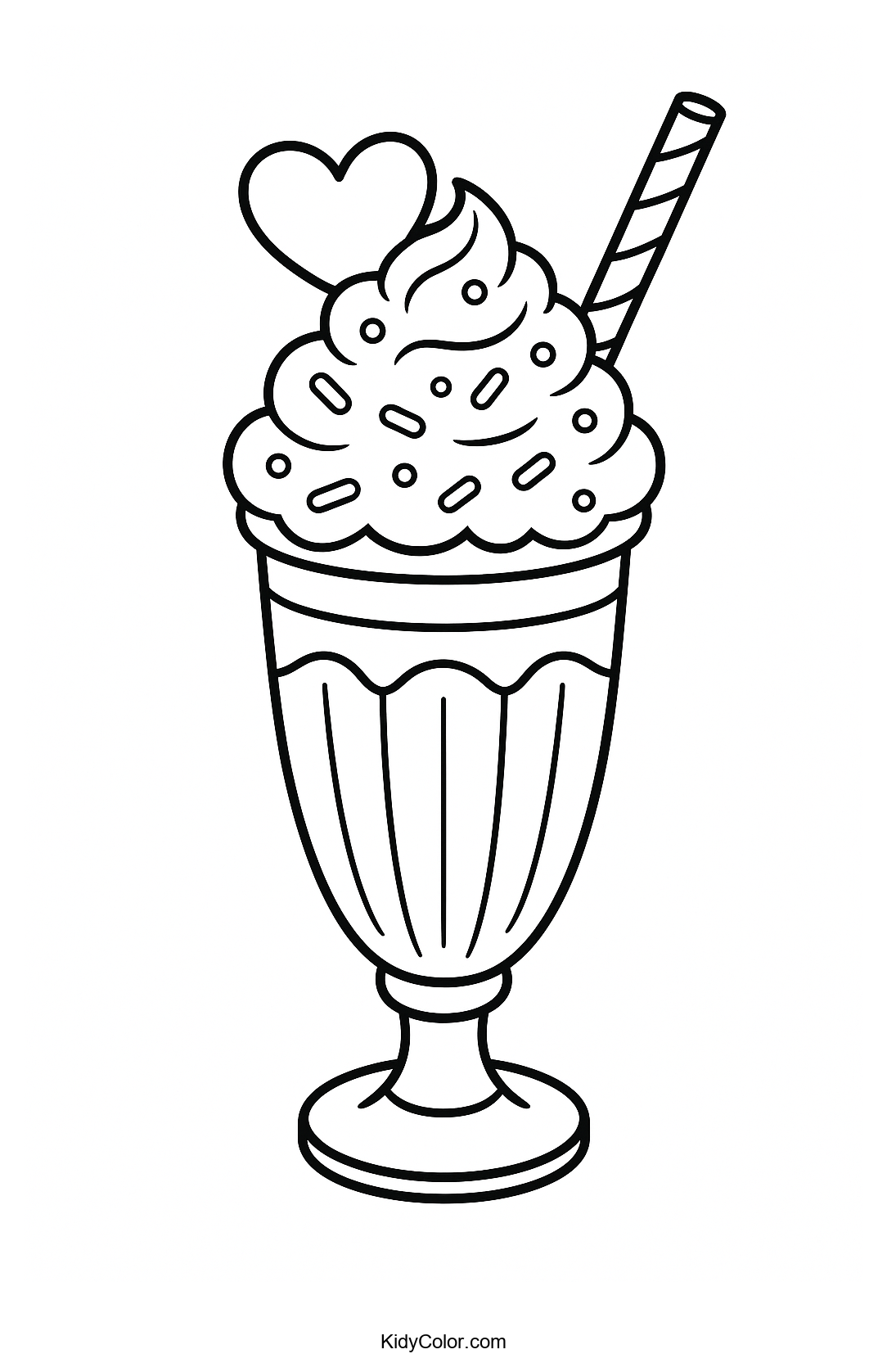 Delight your kids with this fun and creative coloring page featuring a classic milkshake topped with whipped cream. Perfect for little artists to explore colors and textures, this image sparks imagination and provides sweet coloring enjoyment.
