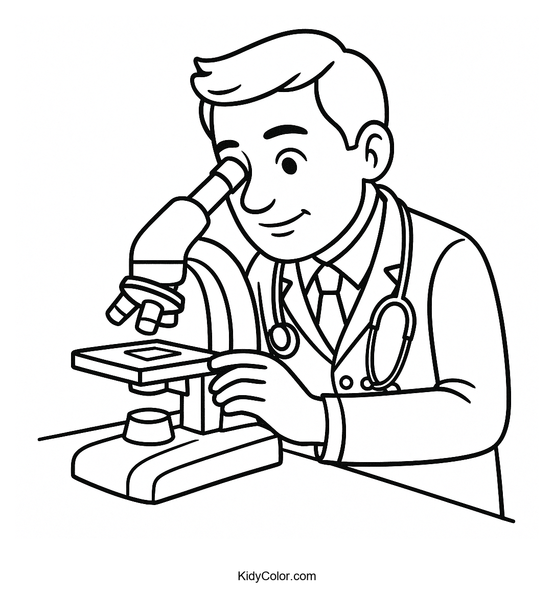 Explore the fascinating world of science with this engaging coloring page featuring a doctor examining a specimen through a microscope. Perfect for young budding scientists, this page encourages creativity while learning about the wonders of biology.