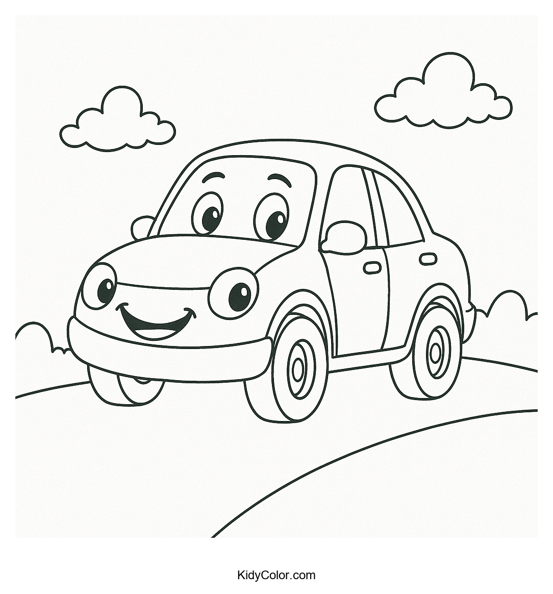 Discover a joyful coloring experience with our Smiling Car on Rolling Hills page, perfect for sparking imagination and creativity. Kids will love bringing this cheerful car and its rolling hill backdrop to life with vibrant colors.