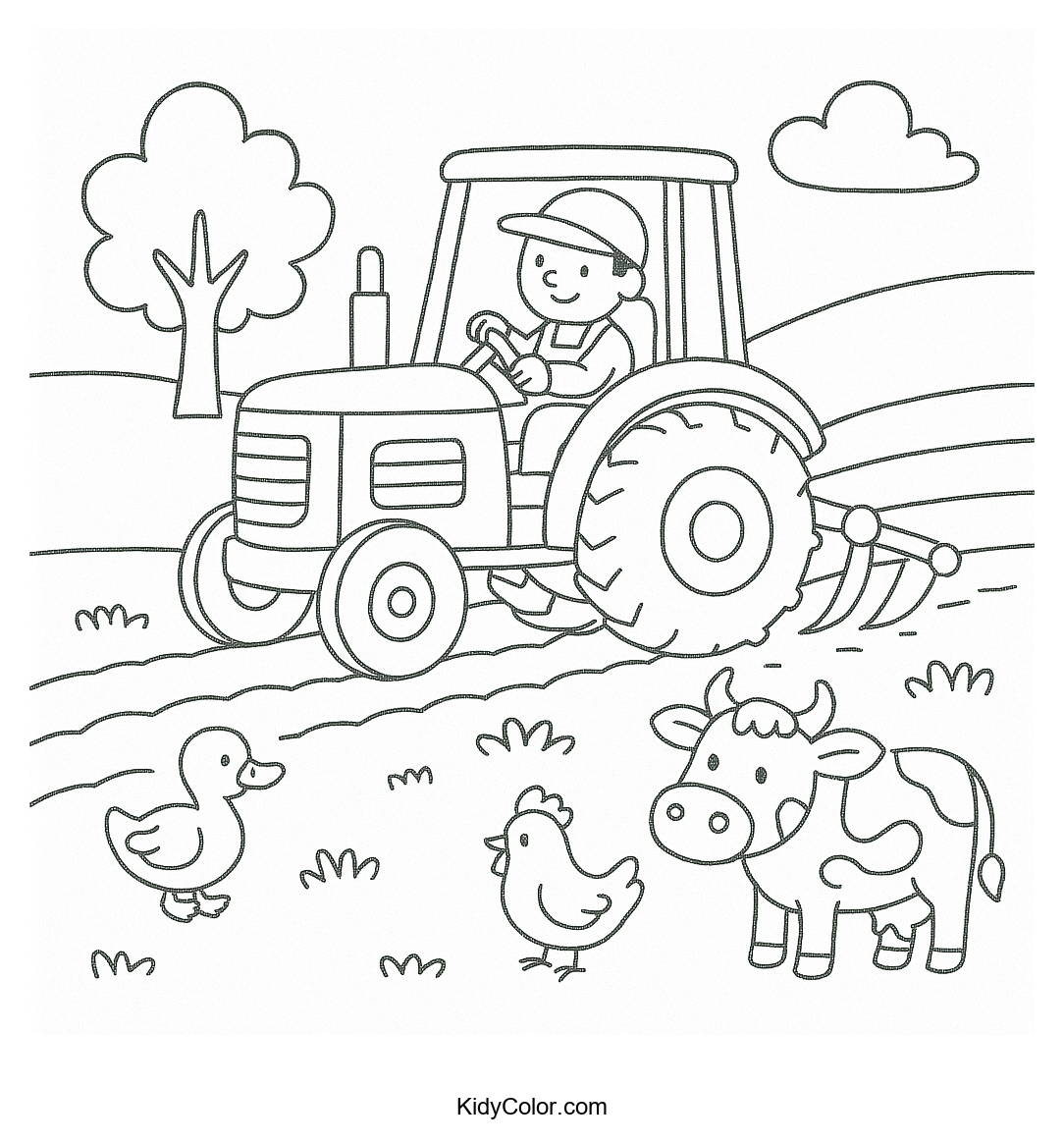 Delight your child with this charming tractor coloring page featuring a classic countryside scene. Ideal for young tractor enthusiasts, this printable activity encourages creativity and fine motor skills.