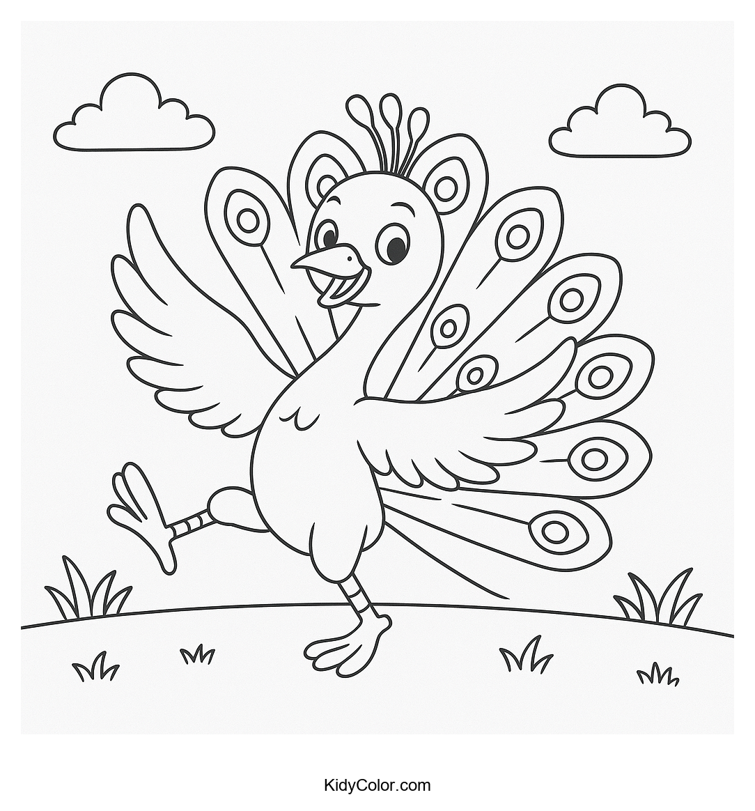 Discover the vibrant world of a dancing peacock in nature. Perfect for kids who love animals and enjoy adding color to beautiful scenes, this page encourages creativity and enhances fine motor skills.