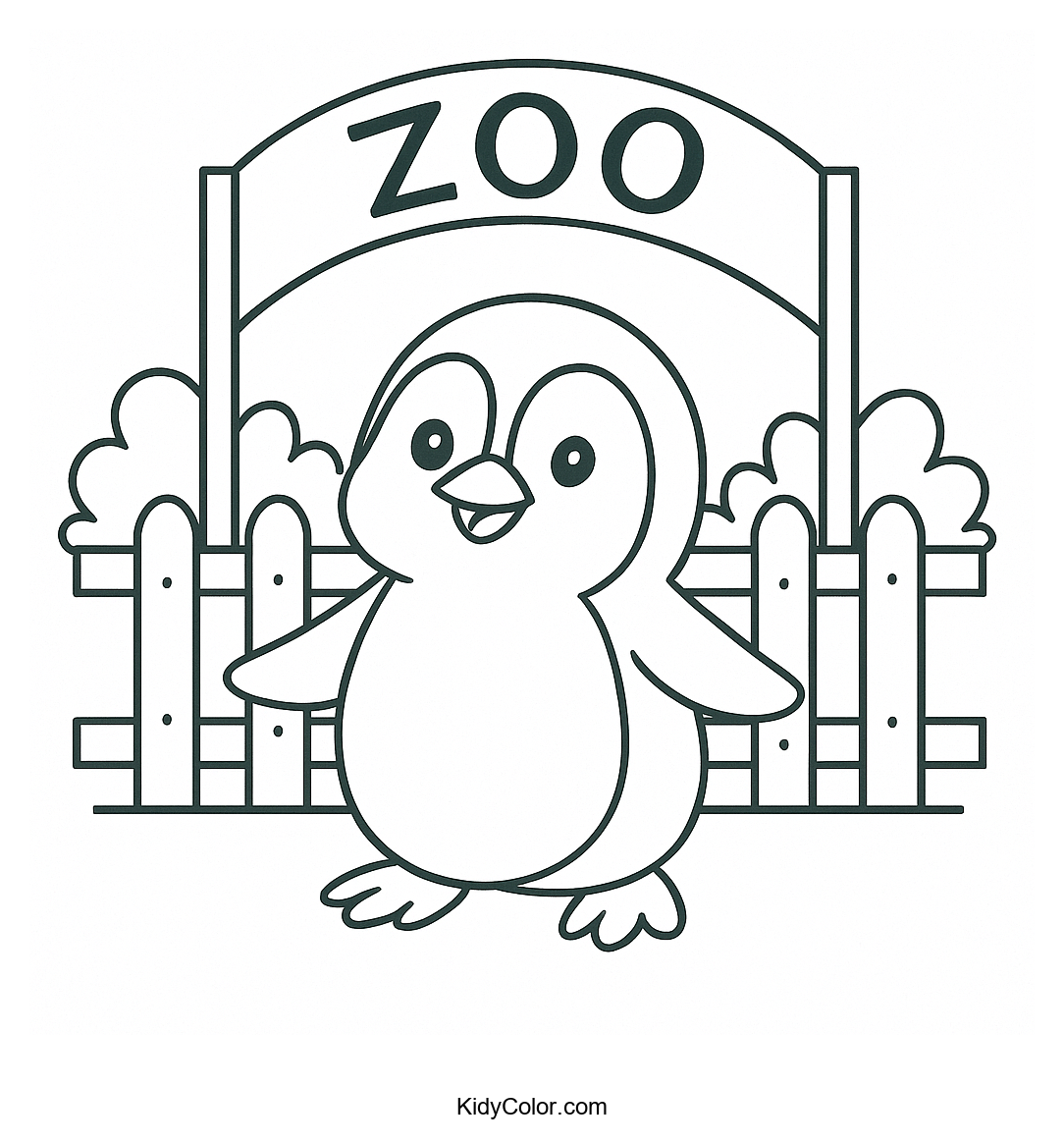 Explore the fun world of zoos with this delightful coloring page, featuring a cheerful penguin greeting visitors at the zoo entrance. Perfect for sparking your child's creativity and love for animals as they bring this friendly penguin to life with colors.