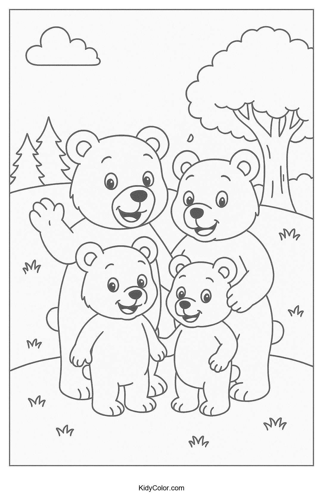Discover this charming coloring page featuring a family of bears enjoying the natural beauty of their forest home. Perfect for kids who love wildlife, this page encourages creativity and appreciation for nature.