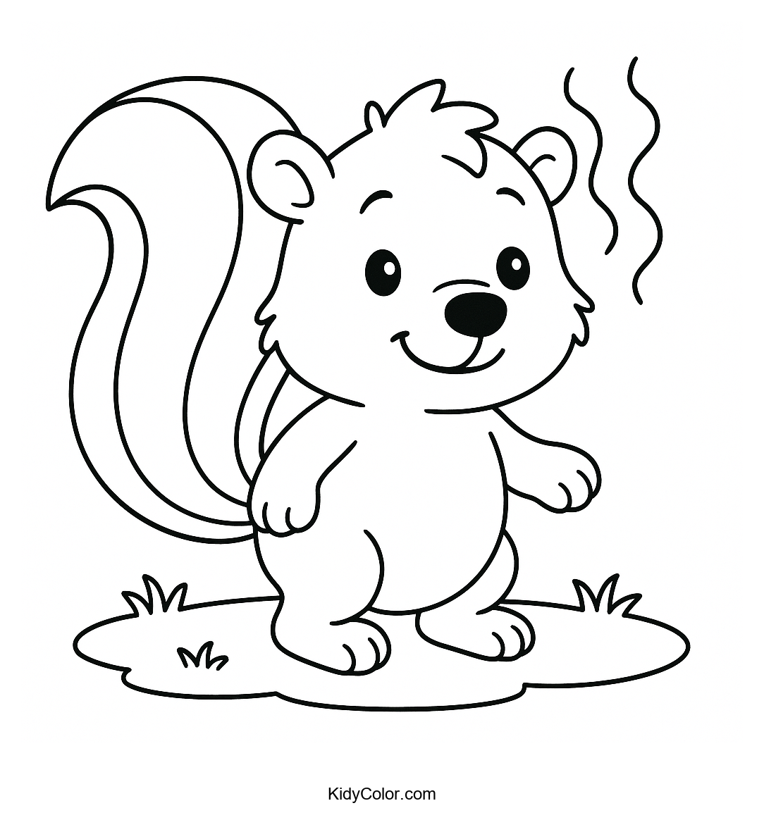 Delight your child with this adorable cartoon skunk on a grassy meadow. Perfect for developing creativity and fine motor skills, this coloring page will keep kids entertained as they bring this charming scene to life with color.
