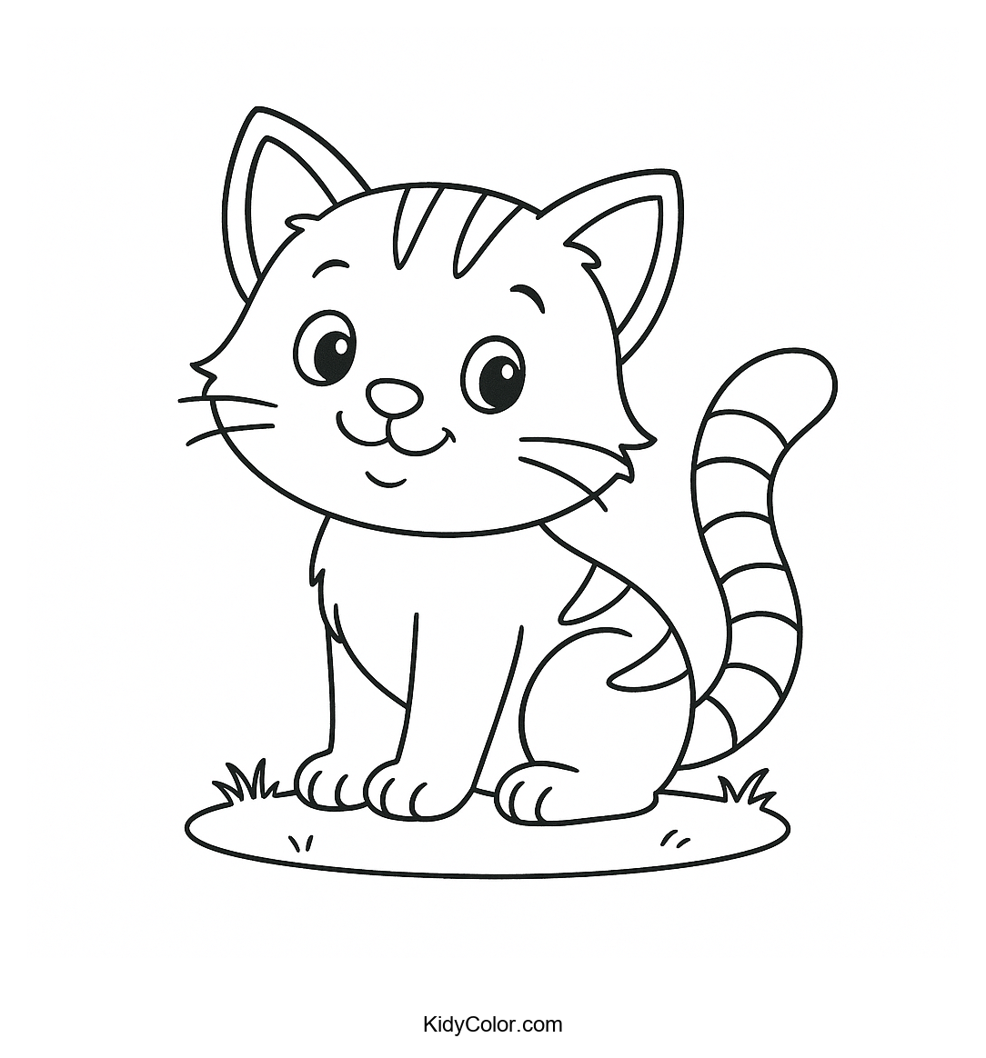 Delight your little artist with this adorable cartoon kitten sitting on a grassy patch. Perfect for encouraging creativity, this coloring page will engage kids as they bring this playful kitten to life with their favorite colors.