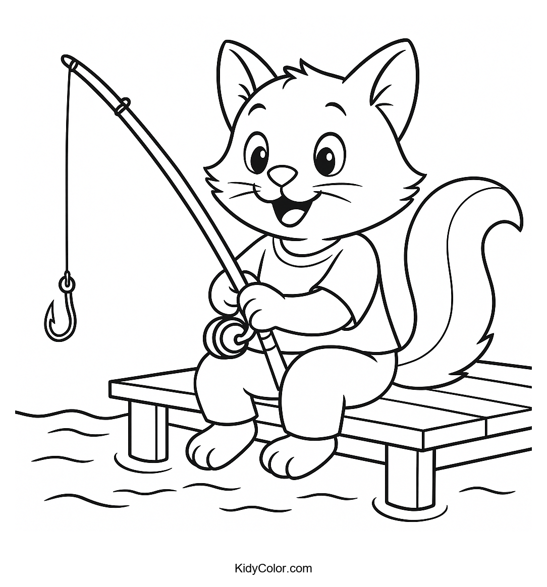 Invite your kids to explore their creativity with this delightful coloring page featuring a cheerful cat fishing on a dock. Perfect for animal lovers, this fun scene will inspire imagination and improve fine motor skills through coloring.