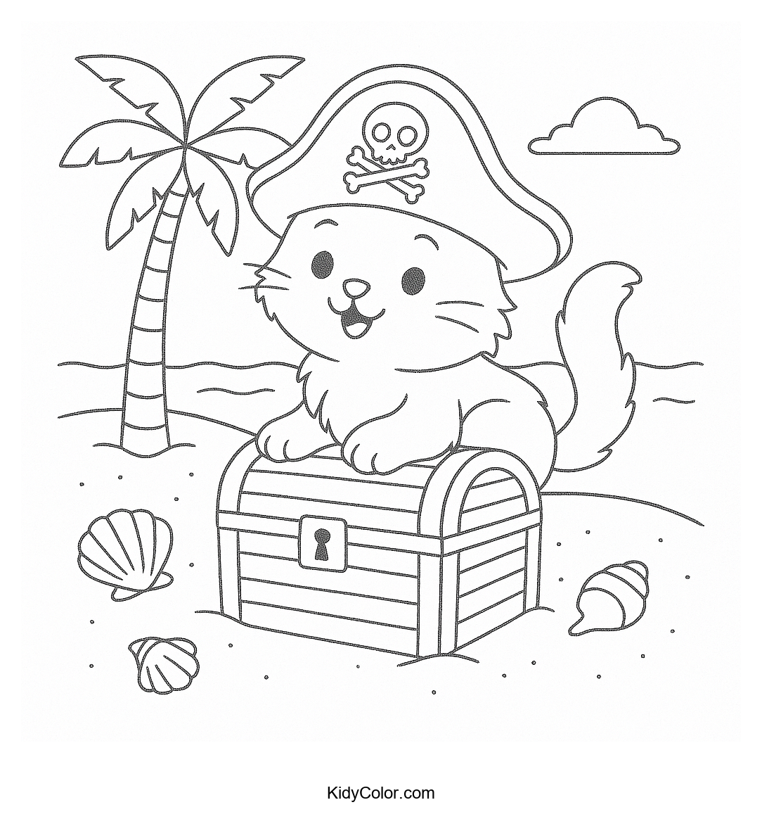 Set sail on a fun adventure with this Pirate Cat on the Beach coloring page! Kids will love bringing this whimsical scene to life with their favorite colors, enhancing their creativity and imagination.