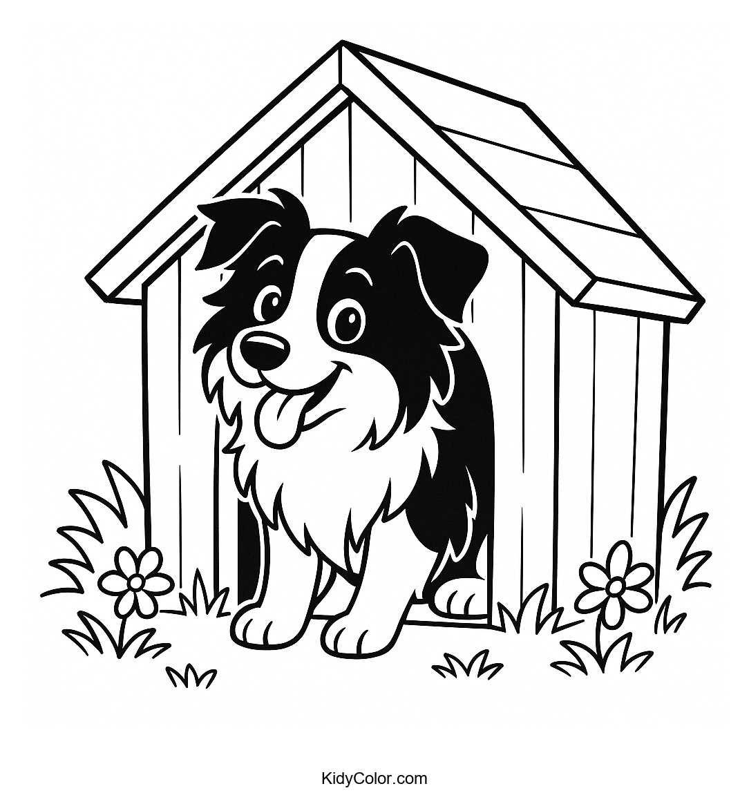 Discover a joyful Border Collie ready for fun in this delightful coloring page. Perfect for young dog lovers, this image offers an engaging experience blending creativity with learning as kids bring this friendly pup to life with colors.