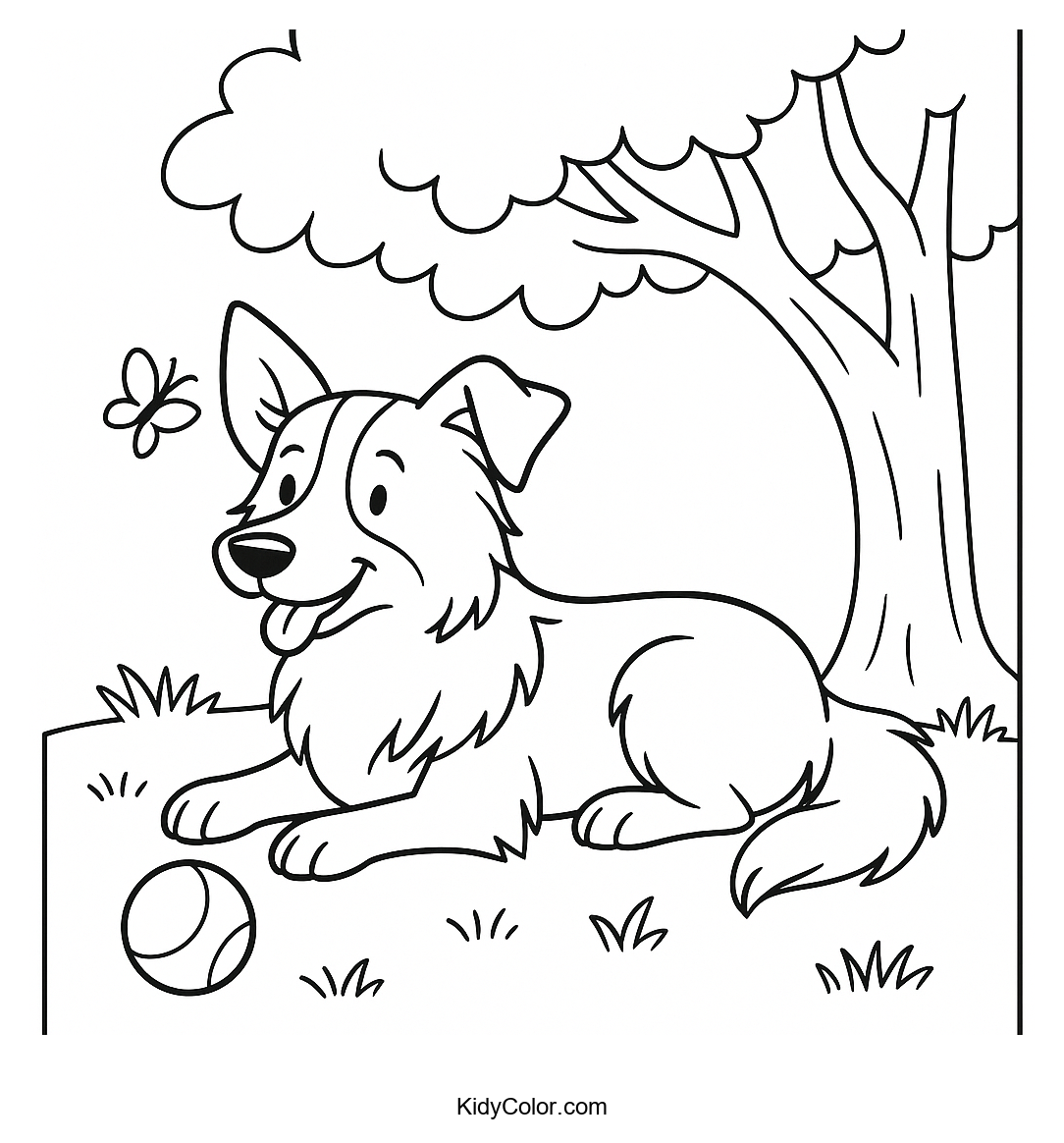 Discover a peaceful scene with our Resting Border Collie Under a Tree coloring page. Perfect for dog-loving kids, this image invites young artists to explore creativity with nature's colors.