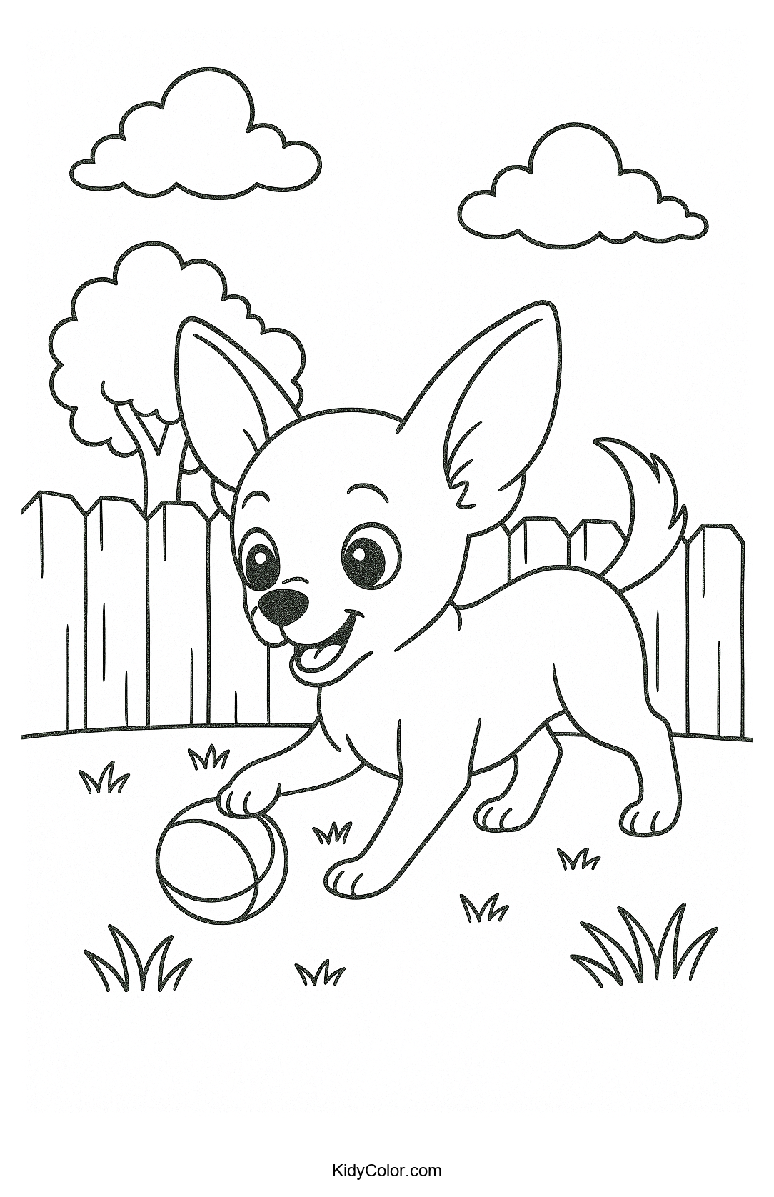 Delight your child's creativity with this playful Chihuahua in the backyard coloring page! Perfect for young dog lovers, this page offers an exciting scene to bring to life with vibrant colors.
