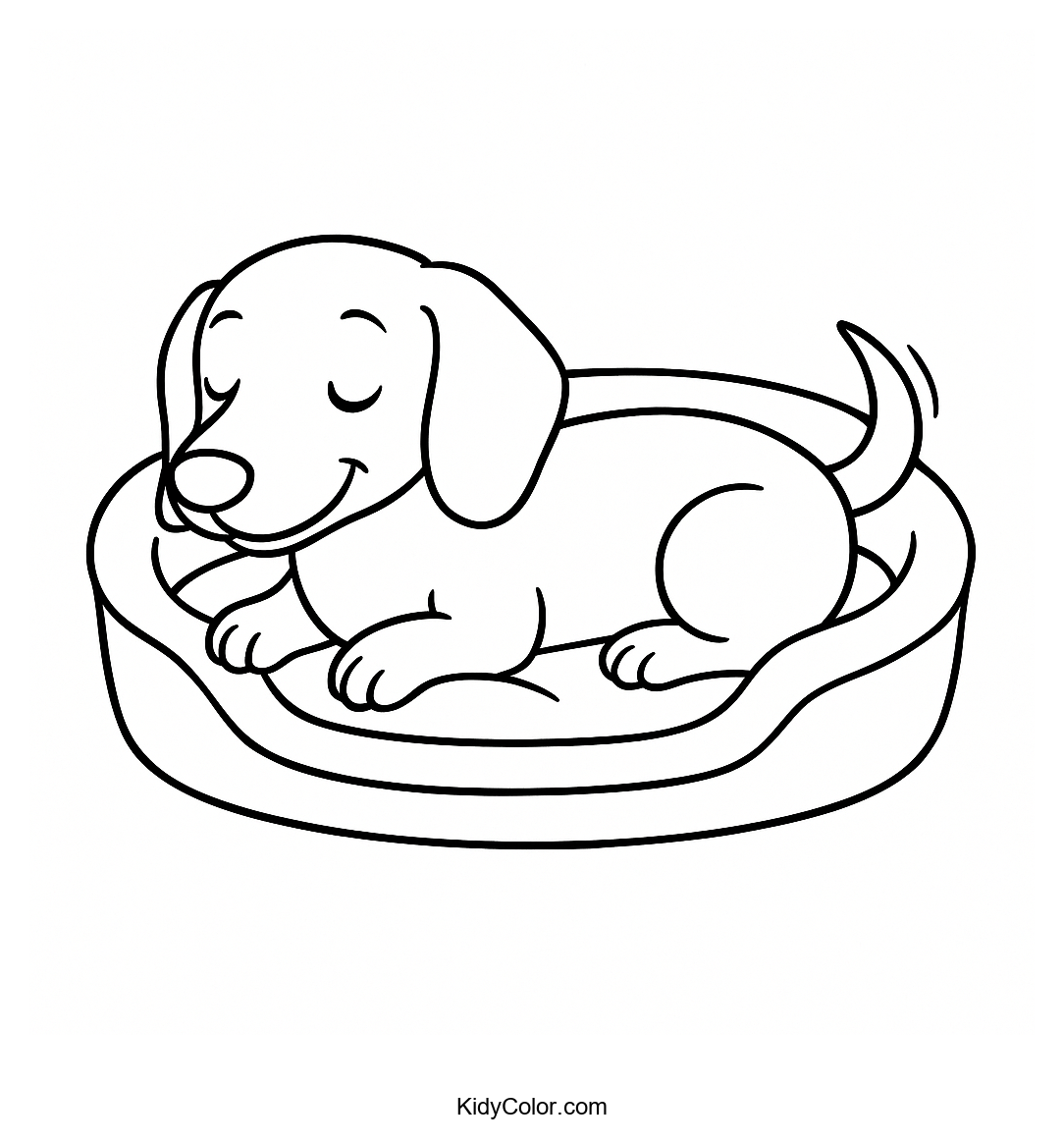 Explore this delightful coloring page featuring a dachshund asleep in its cozy bed. Perfect for kids who love pets, this page allows them to express creativity with colors while learning about this adorable breed.