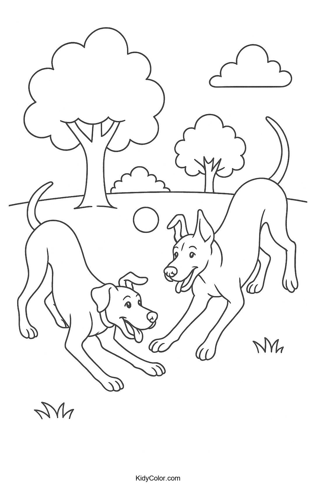Delight your children with this playful Great Danes at the Park coloring page. This fun scene of joyful dogs frolicking offers hours of creative amusement for young artists.