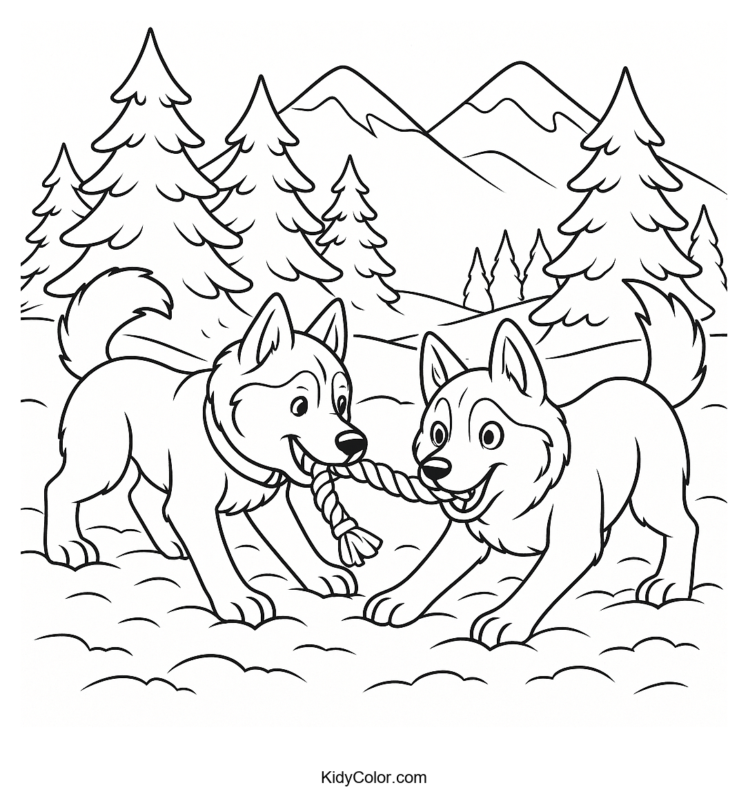 Discover the excitement of a snowy adventure with our Huskies Tug-of-War coloring page, perfect for kids who love playful sled dogs and winter scenes. This engaging activity sparks creativity with a fun depiction of huskies frolicking in a snow-covered landscape. Ideal for encouraging imaginative coloring fun!