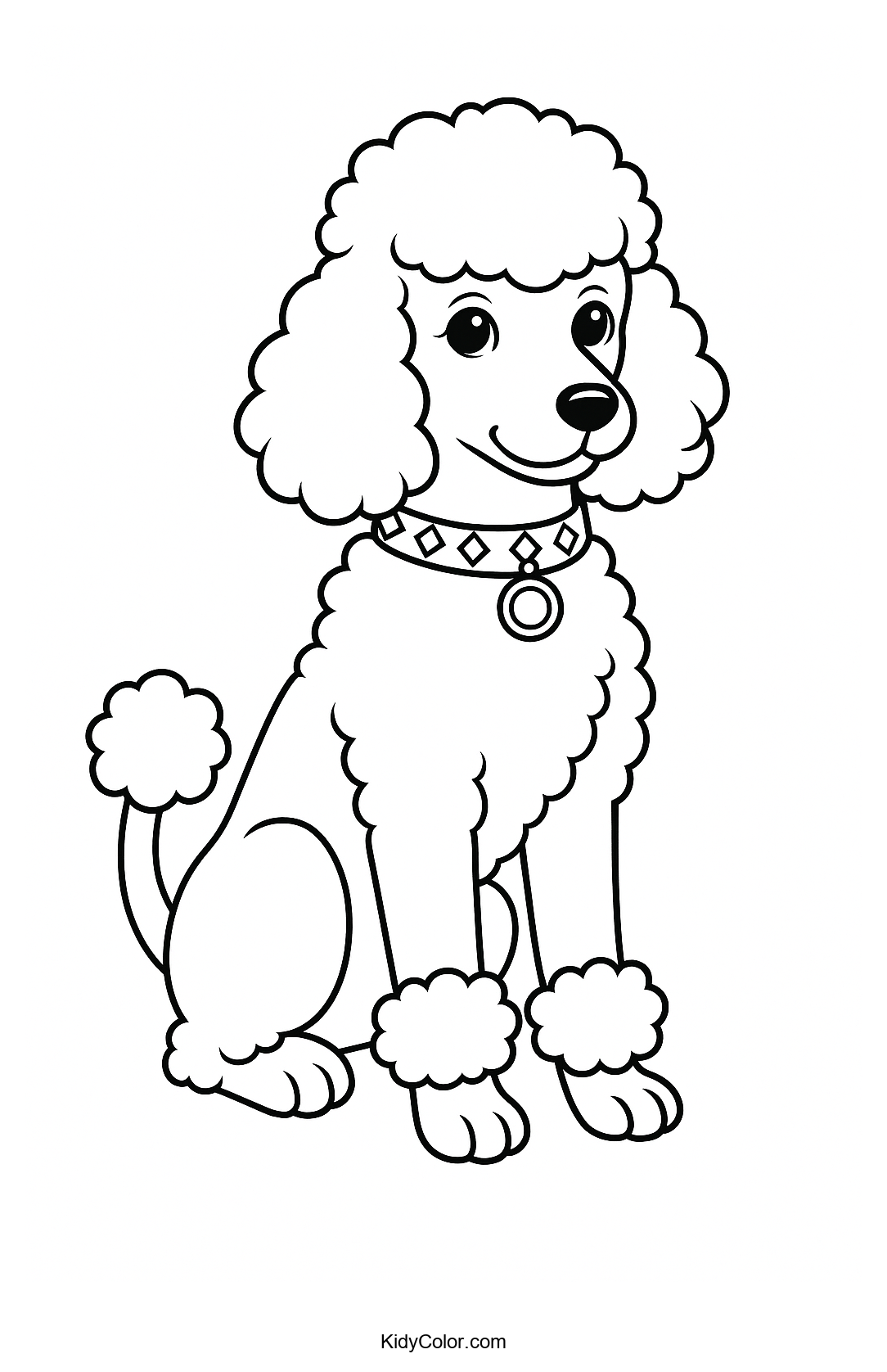 Delight your child with this fun cartoon poodle coloring page featuring an elegant ornate collar. Kids will love adding their favorite colors to bring this adorable poodle to life and enhance their creativity.