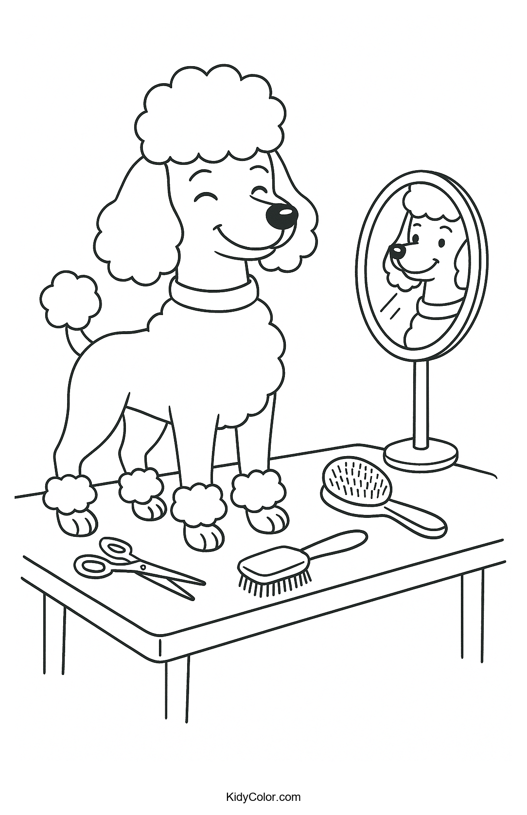 Discover the delightful Poodle on a Grooming Table coloring page, perfect for kids who love animals and creativity. This engaging scene invites children to use their imagination to bring this adorable poodle to life with vibrant colors.