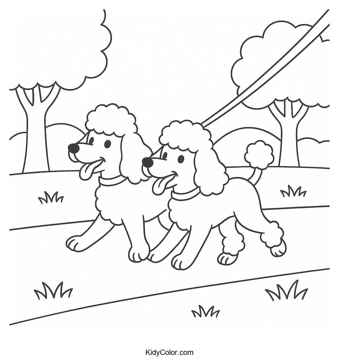 Delight your child with this adorable Poodle Pairs coloring page, featuring cute poodles enjoying a day in the park. Perfect for young animal lovers, this scene offers endless creativity in coloring fluffy fur and vibrant surroundings.
