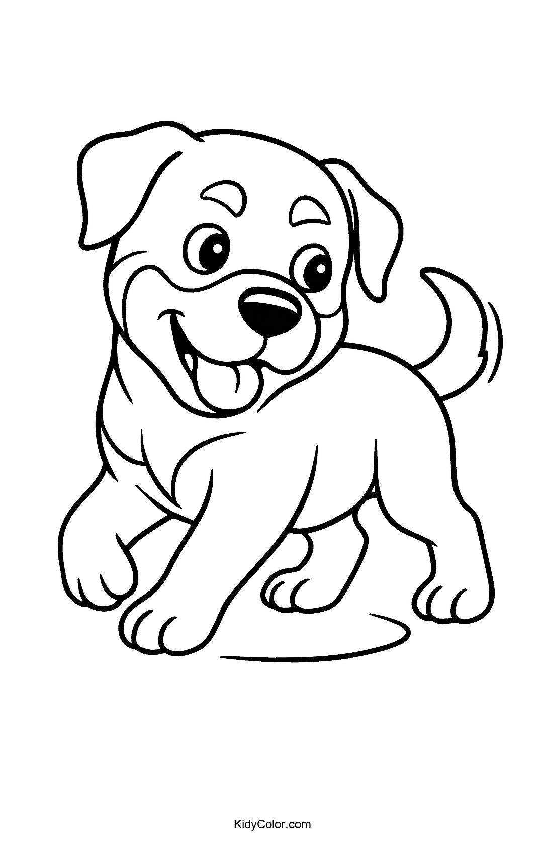 Delight your little artists with this adorable Rottweiler puppy coloring page as it amusingly chases its tail. Perfect for dog lovers, this page encourages creativity and fine motor skills in a playful way.