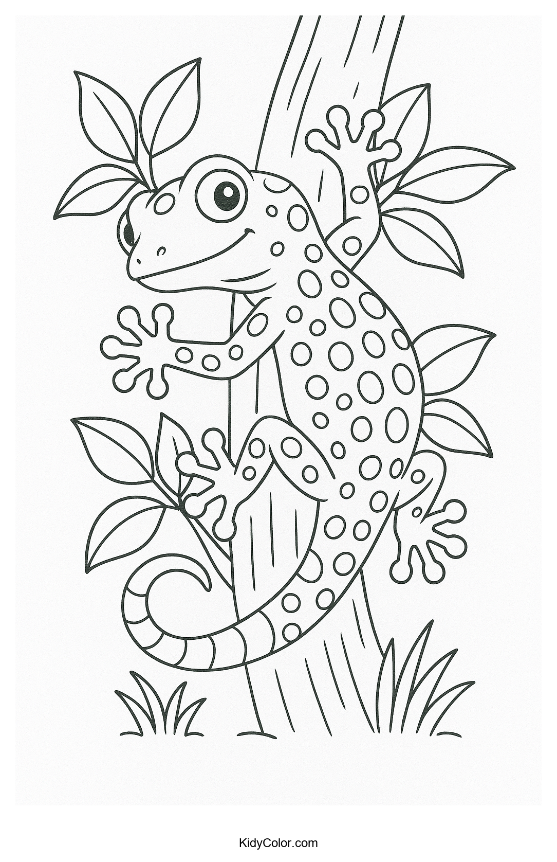 Explore the wonders of nature with this exciting coloring page featuring a gecko climbing a leafy tree. Perfect for kids who love animals and enjoy bringing vibrant scenes to life with color!