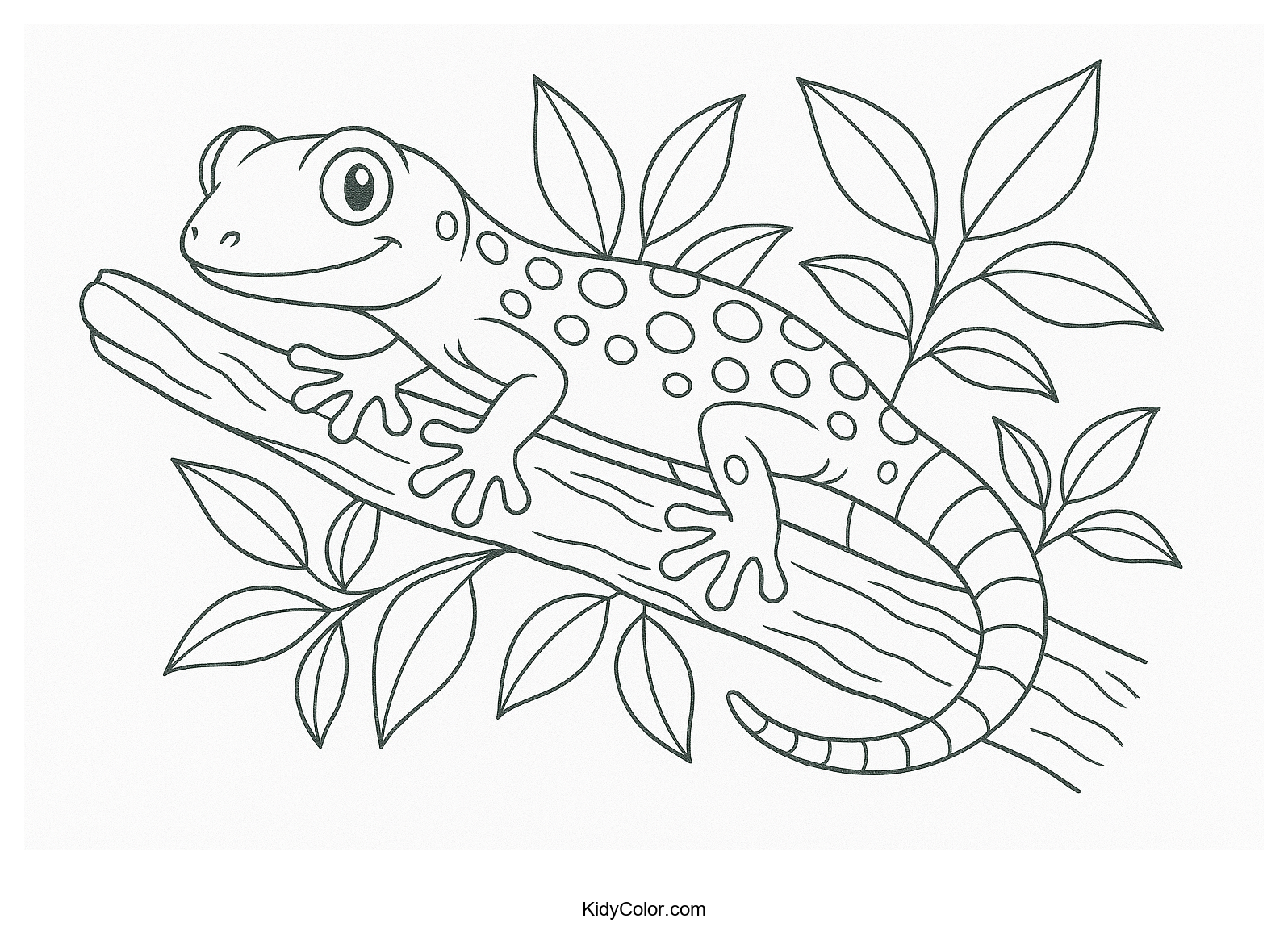 Discover the fascinating world of nature with our Gecko on a Leafy Branch coloring page. Perfect for young artists, this page invites kids to explore vibrant greens and intricate patterns as they bring this adorable gecko and its leafy surroundings to life.