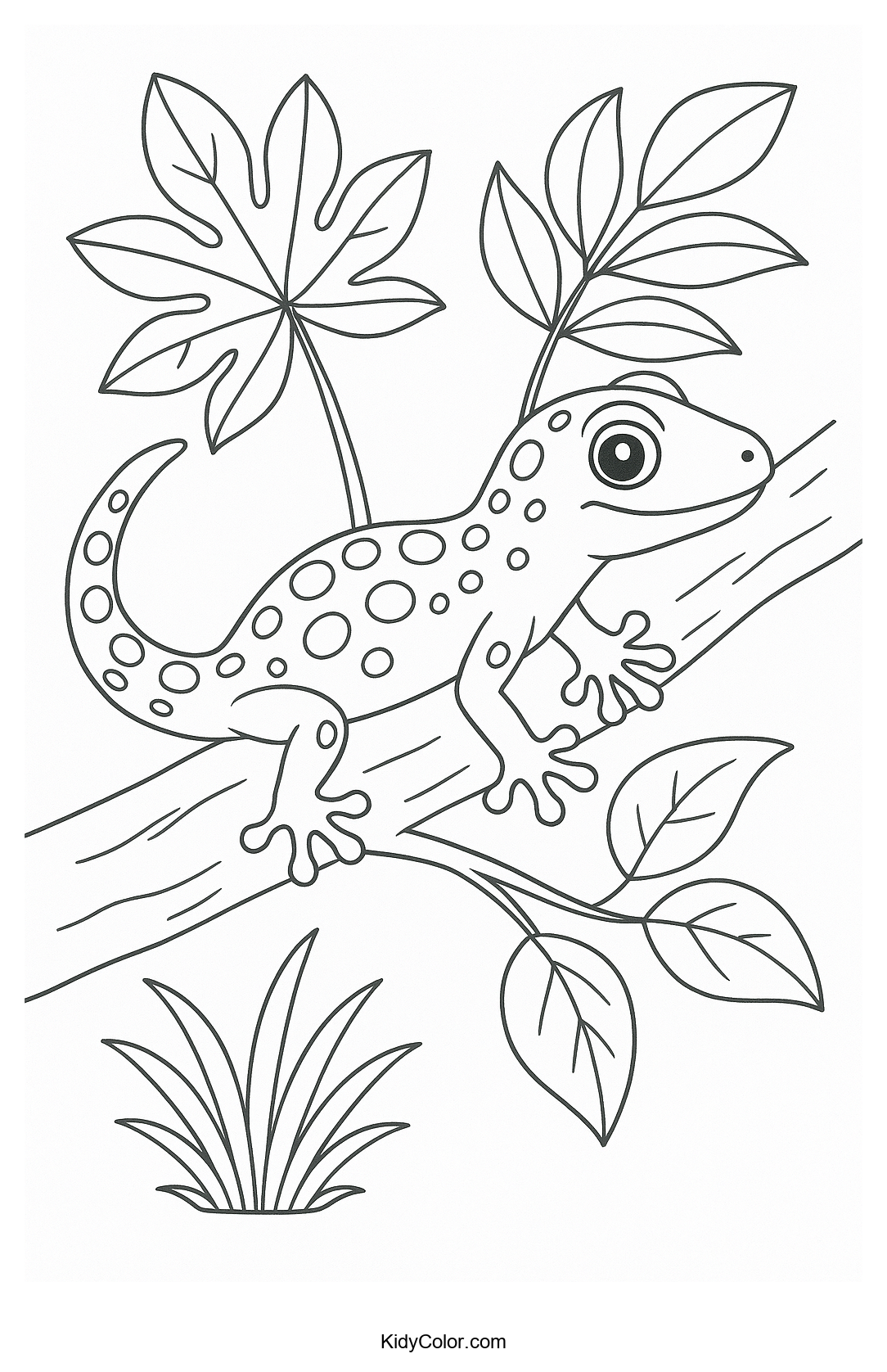 Let your child's creativity run wild with this Gecko on a Tropical Branch coloring page. Perfect for young nature lovers, it's a fun way for kids to explore vibrant colors and intricate patterns while enhancing their fine motor skills.