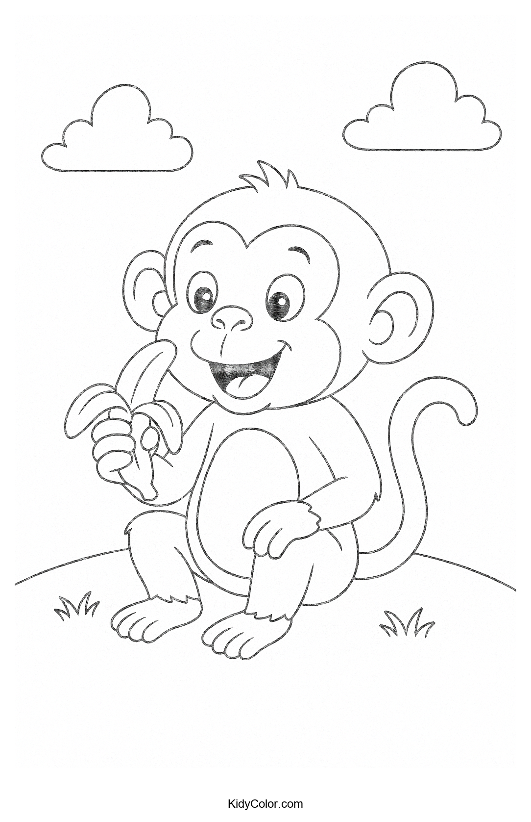 Delight your little one's artistic side with a fun coloring page featuring a playful monkey enjoying a banana! Perfect for kids who love animals, this charming scene will spark creativity and provide hours of coloring joy.