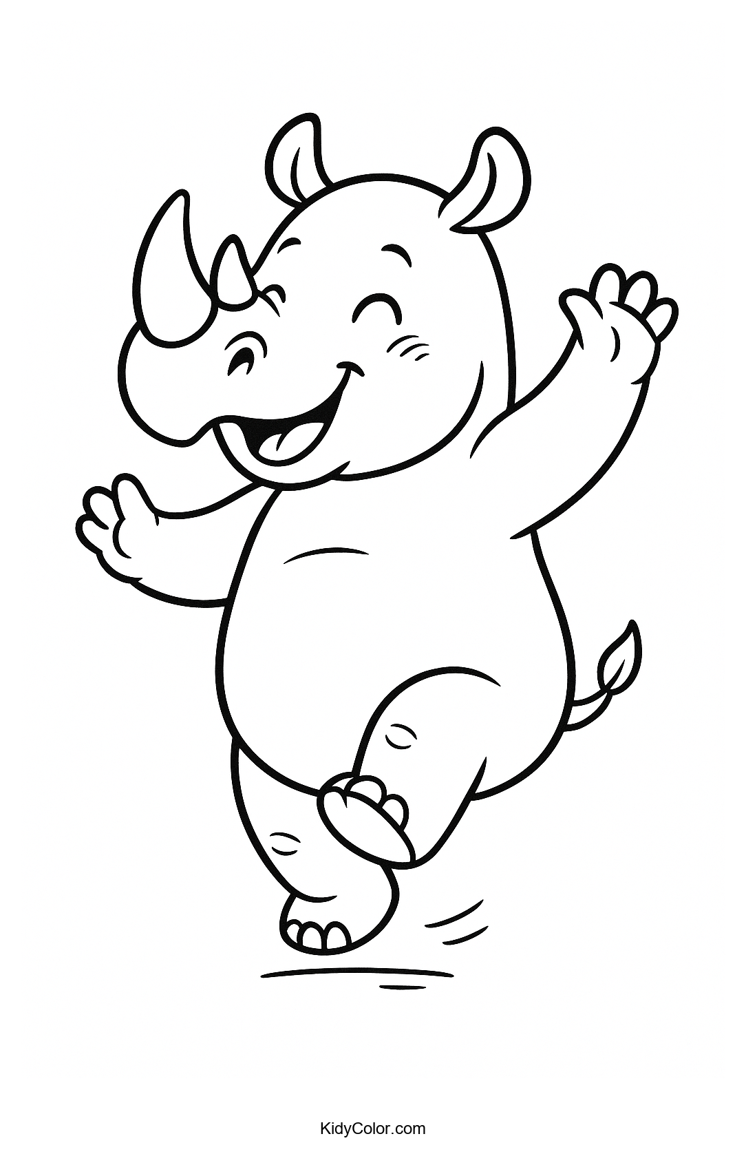 Explore the joy of creativity with this delightful coloring page featuring a dancing rhino in joyful motion. Perfect for kids who love animals and enjoy expressing rhythm and happiness through colors.