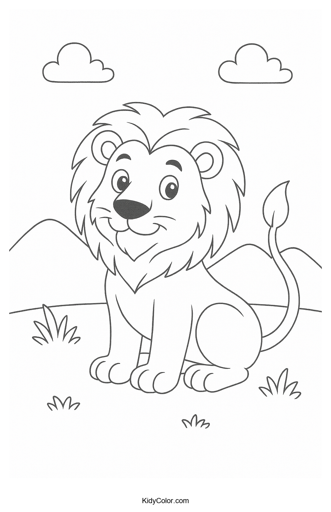 Engage your kids with this adorable friendly lion in nature coloring page. Let their creativity roar as they color the cheerful lion surrounded by lush greenery, perfect for animal-loving little artists.