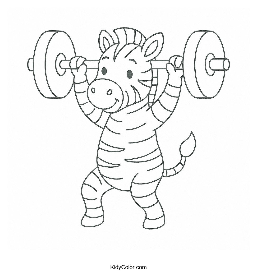 Encourage your child's creativity with this unique coloring page of a zebra lifting weights. Perfect for inspiring young imaginations and teaching about animals in fun, active scenes.