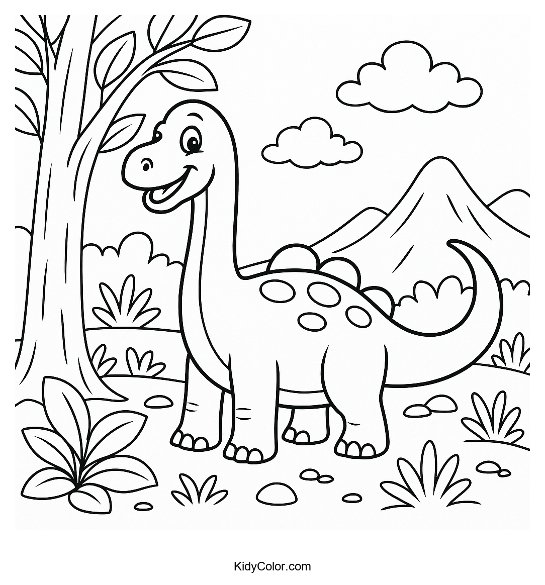 Inspire your child's creativity with this delightful coloring page featuring a friendly Brachiosaurus wandering in a prehistoric landscape. Perfect for young dinosaur enthusiasts, this printable promises endless fun and imaginative exploration.