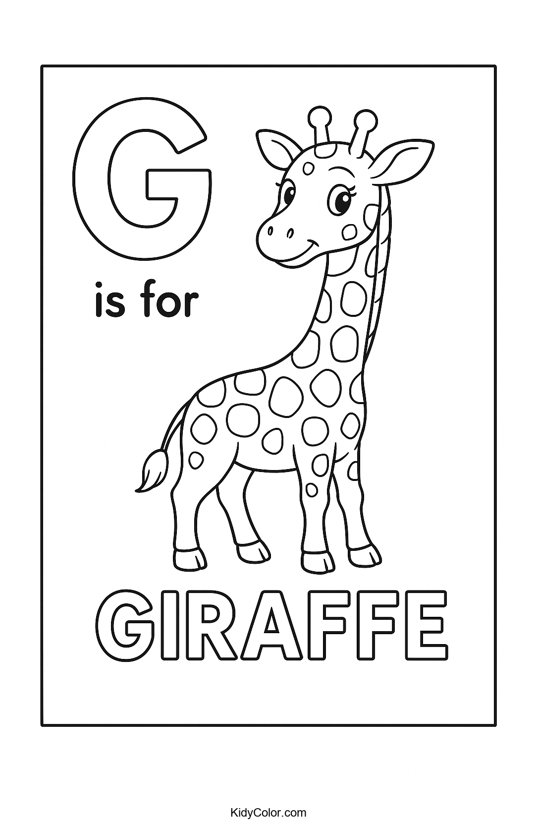 Explore the world of giraffes with this entertaining alphabet coloring page. Perfect for young children, this page combines learning and creativity, making it a delightful activity for parents and kids alike.
