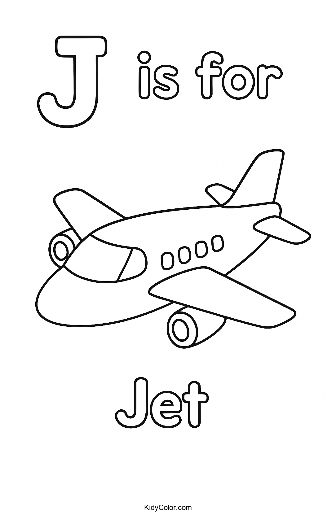 Explore the skies with this 'J is for Jet' coloring page! Perfect for helping kids learn the alphabet while engaging their creativity, this page offers a thrilling depiction of a jet in flight that young artists will love to color.