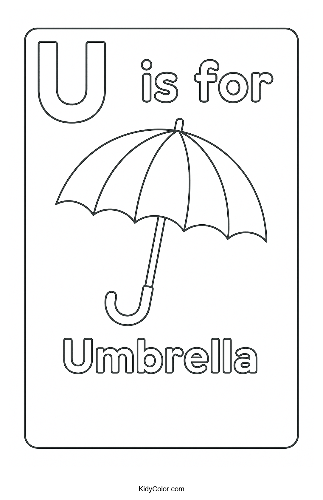Discover the perfect rainy day activity with our "U is for Umbrella" coloring page! This delightful image will spark creativity and help kids reinforce letter recognition while enjoying coloring a whimsical umbrella scene.