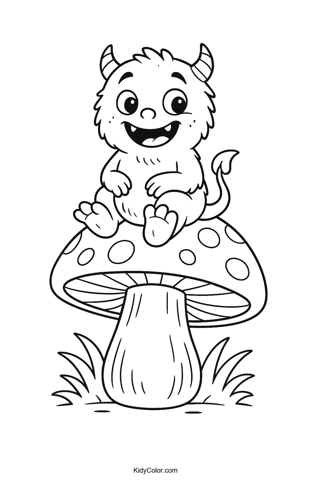 Delight your child's imagination with this adorable coloring page featuring a friendly monster perched on a whimsical mushroom. Perfect for kids who love creative and colorful creatures, this page encourages fun, vibrant artwork.