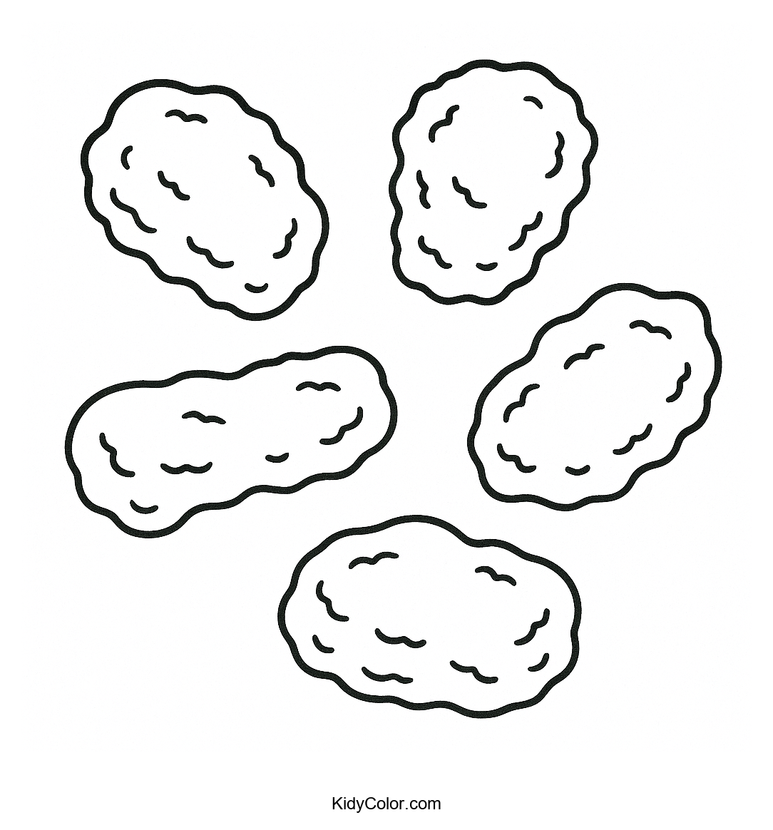 Delight your child's creativity with this unique coloring page featuring five whimsical chicken nuggets. Perfect for kids who love food and imaginative play, this page offers endless coloring possibilities with each nugget's distinct shape.