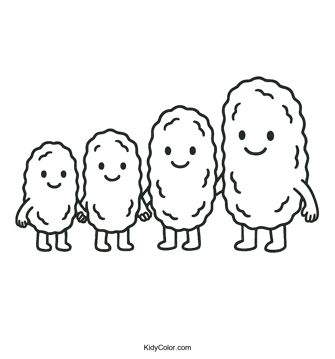 Delight your kids with this cute Nugget Friends in a Row coloring page. Perfect for sparking creativity, this page invites little artists to bring a playful scene of best buddies to life with color.