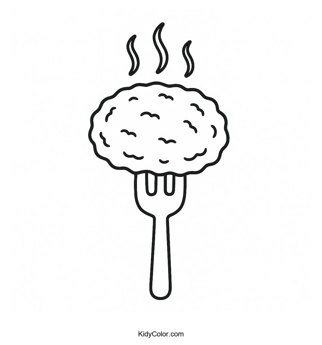 Delight your child with this fun, food-themed coloring page featuring a steaming forked chicken nugget. It's perfect for young kids who love both coloring and delicious snacks, sparking creativity and honing fine motor skills.