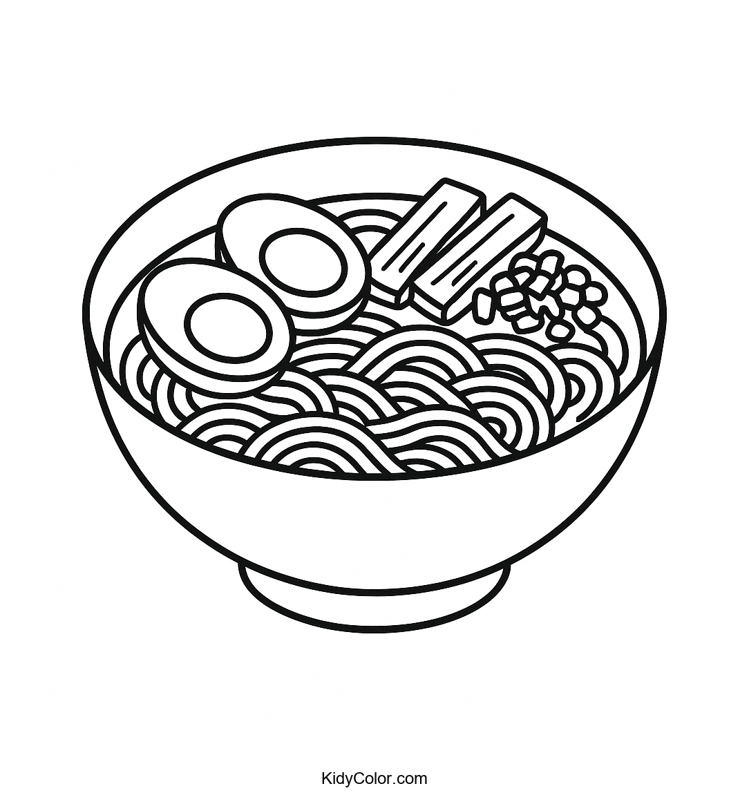 Explore the delightful details of a ramen bowl with eggs and bamboo in this coloring page. Perfect for young artists who love diverse foods, this page encourages creativity while introducing kids to the wonders of international cuisine.
