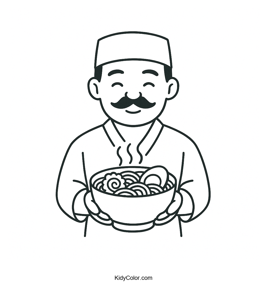 Discover a delightful Ramen Chef coloring page that invites kids to explore their creativity by coloring a chef with a steaming bowl of ramen. Perfect for young food lovers and aspiring chefs, this page offers a tasty twist to traditional coloring fun.