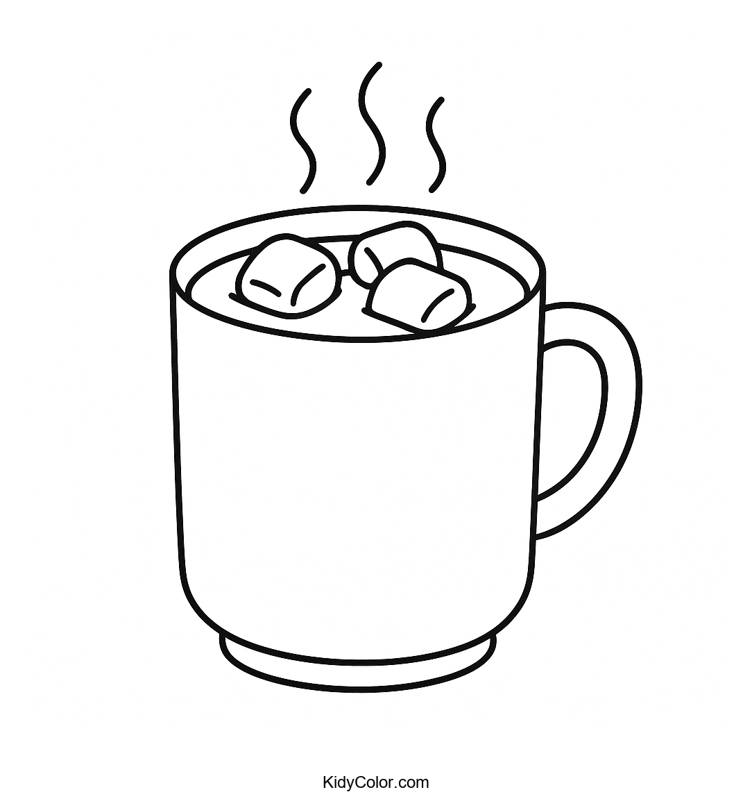 Delight your child's creativity with this cozy coloring page featuring a warm cup of hot chocolate topped with fluffy marshmallows. Perfect for a fun and relaxing indoor activity, this page encourages your little one to explore colors while imagining a delightful winter treat.