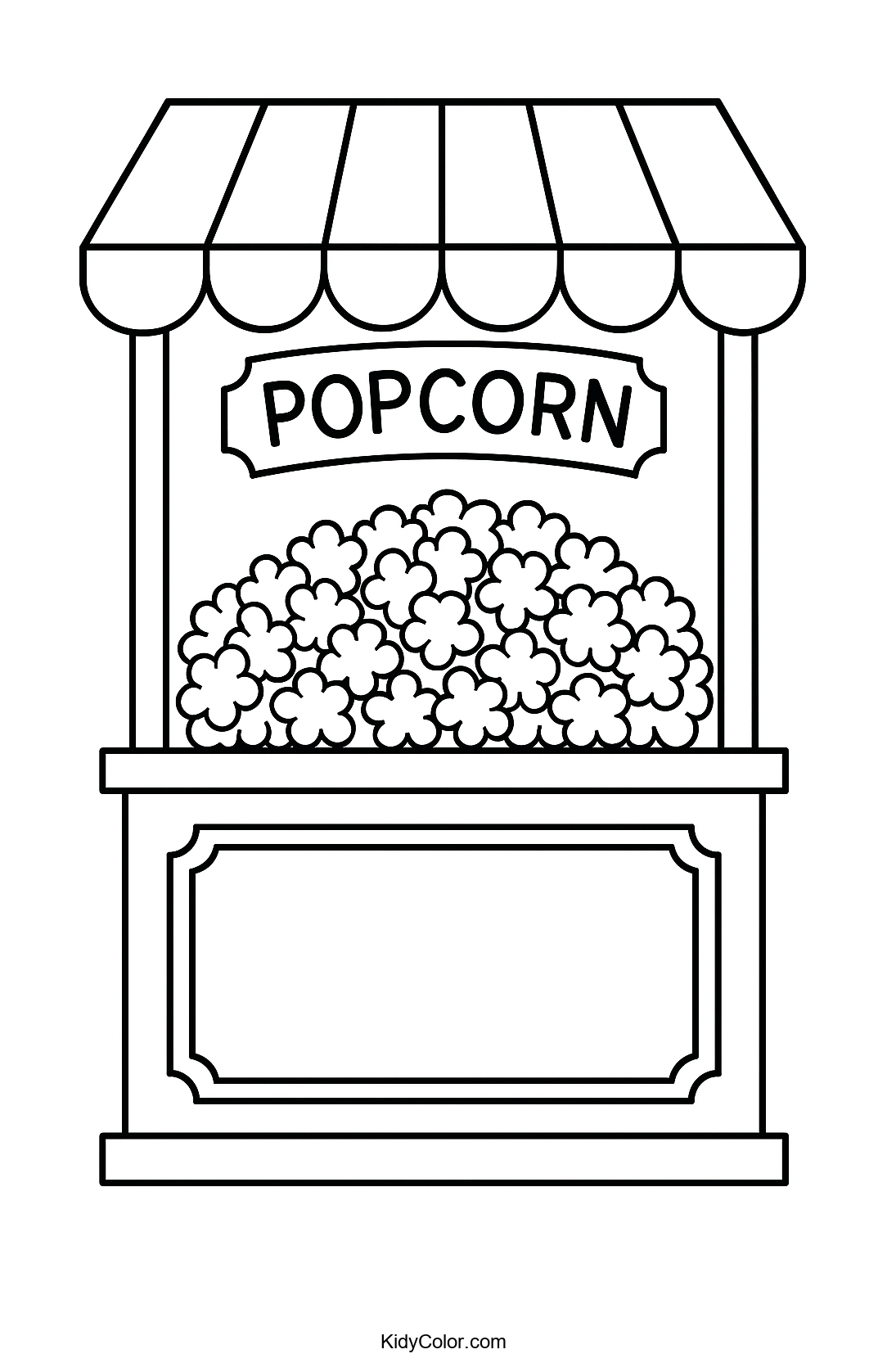 Delight your kids with this charming popcorn stand illustration, perfect for a fun and engaging coloring experience. They'll love adding vibrant colors to the popcorn and stall scene as they imagine running their own popcorn stand!