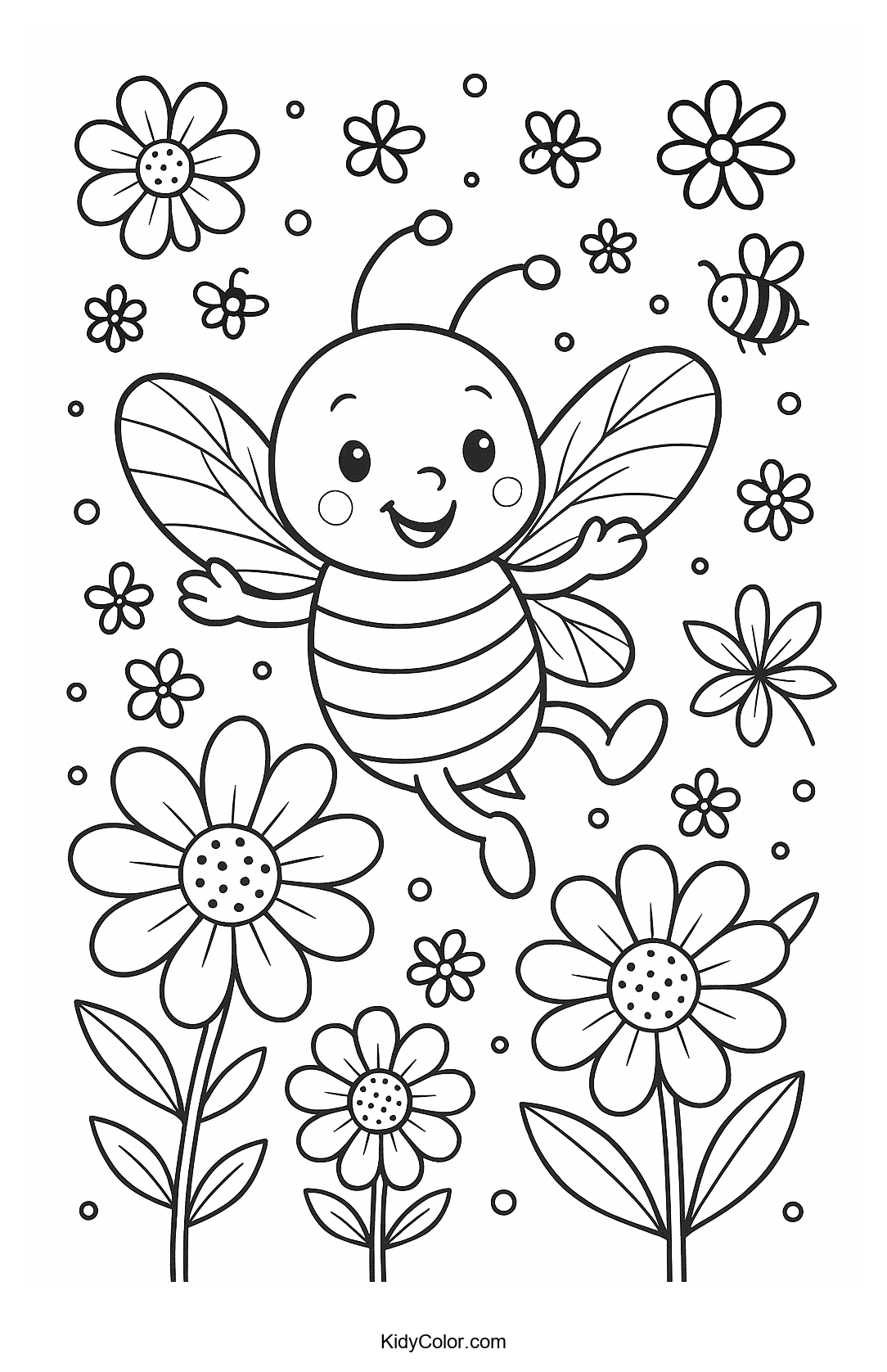 Explore the wonders of nature with our cheerful "Bee and Blossoms in Bloom" coloring page. Perfect for young artists, this page invites kids to color a buzzing bee amidst vibrant blooming flowers, encouraging creativity and a love for nature.