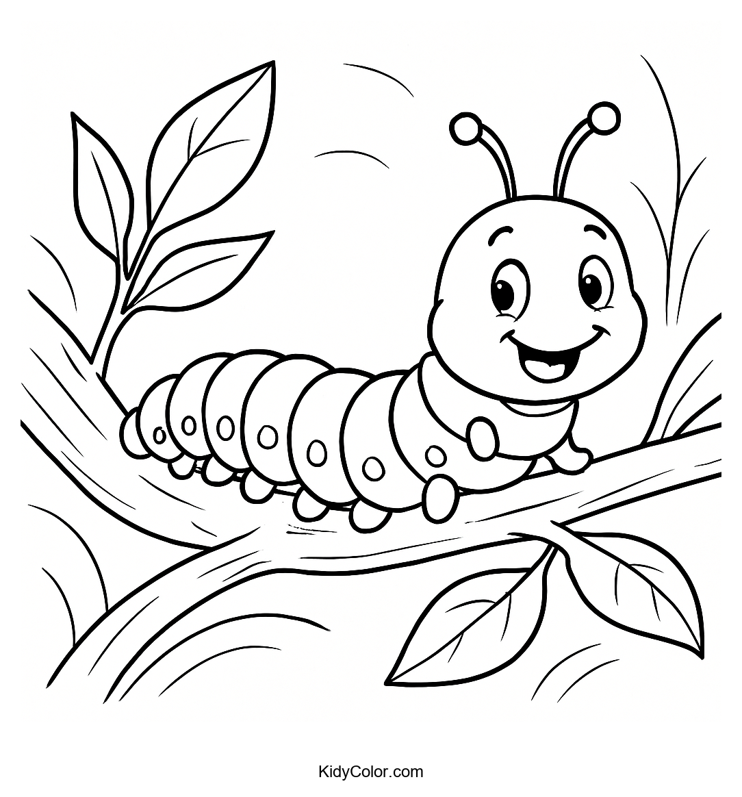 Explore the joy of coloring with this delightful illustration of a cheerful caterpillar resting on a tree branch. Perfect for young nature enthusiasts, this page provides a fun activity while encouraging creativity and color recognition.