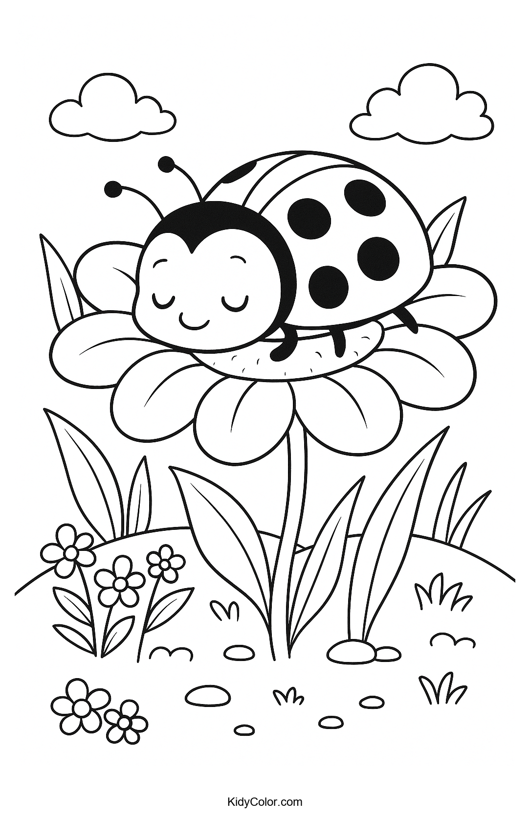 Discover a delightful coloring page featuring a charming ladybug taking a rest on a beautiful flower. Perfect for young artists, this page encourages creativity and helps kids learn about nature in a fun way.