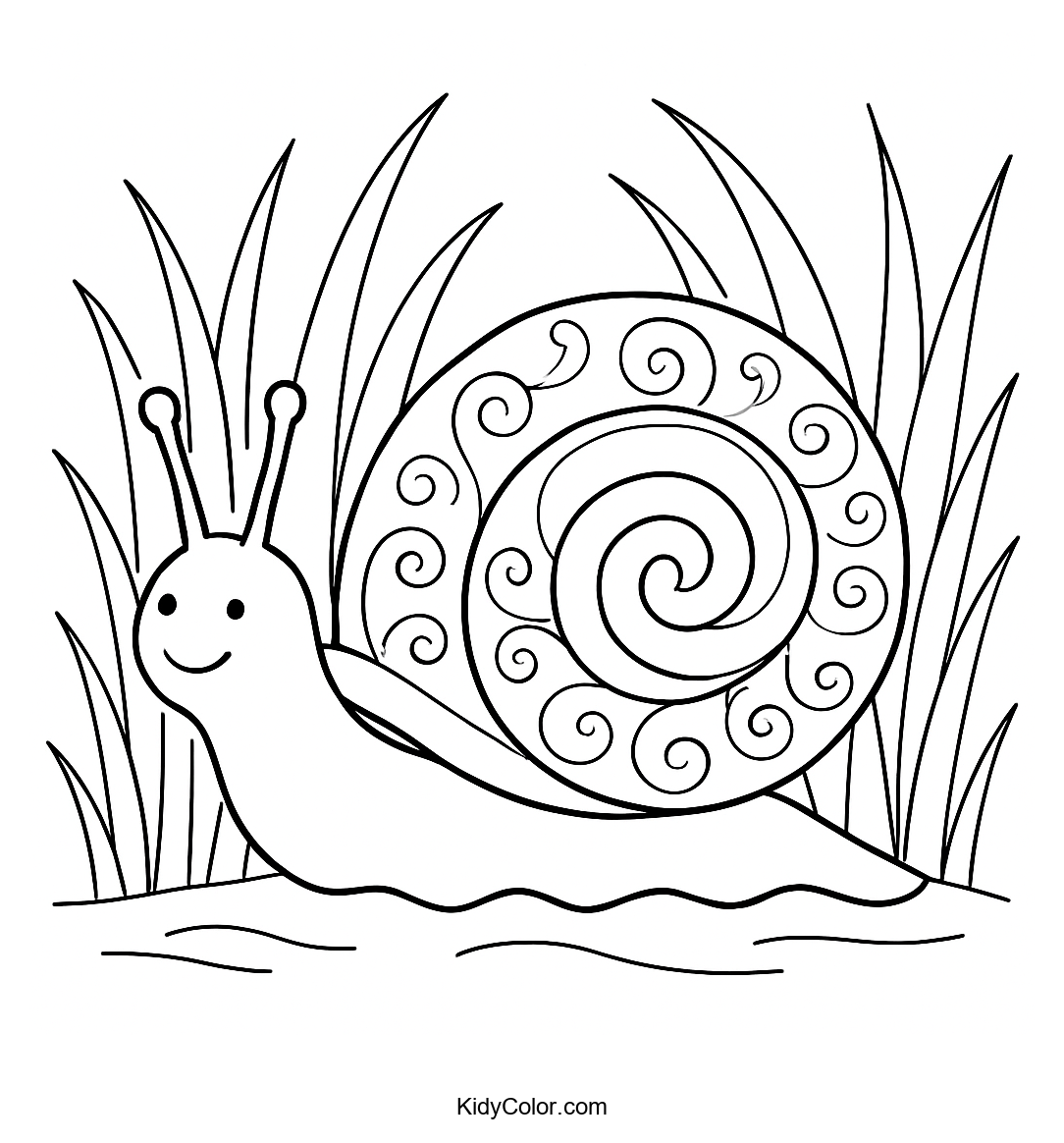 Delight your child with this adorable snail coloring page, perfect for nature-loving kids who enjoy adding vibrant colors to detailed scenes. Great for developing fine motor skills and creativity while learning about snails and their grassy habitats.