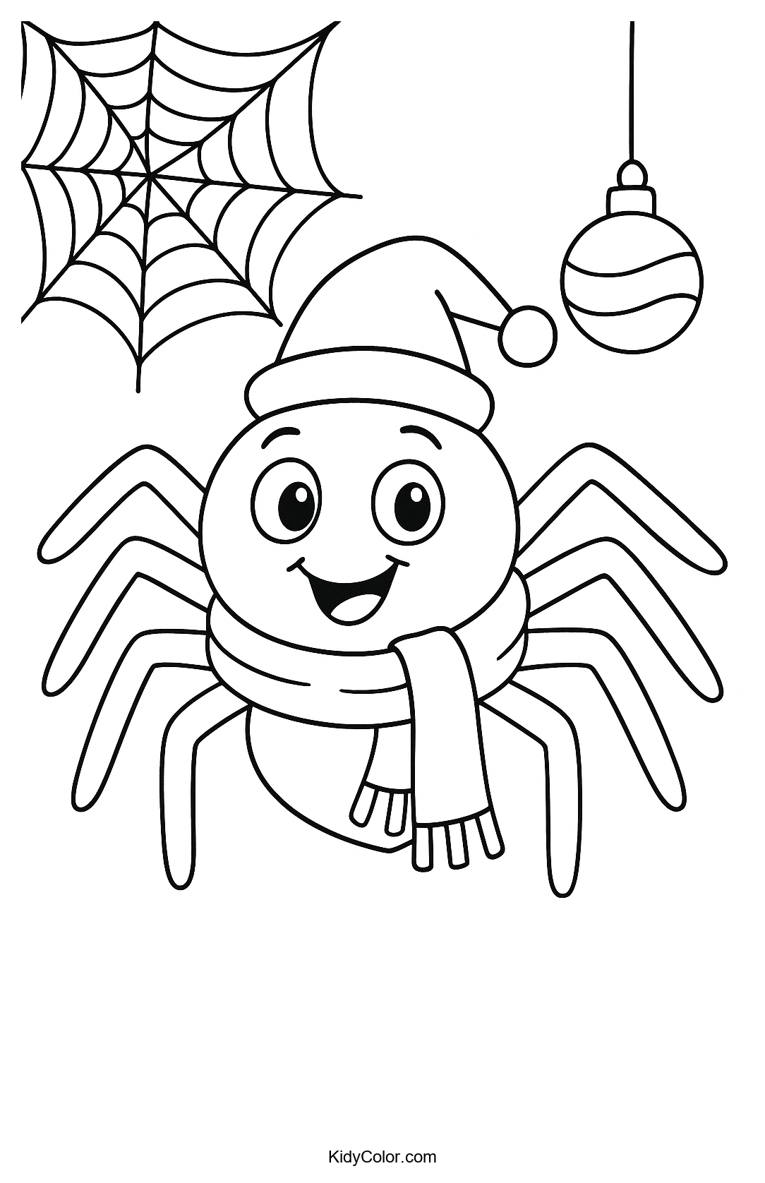 Delight your kids with this charming coloring page featuring a festive spider spreading Christmas cheer. Perfect for holiday-themed fun, kids will enjoy coloring the intricate designs and adding their own imaginative touch.