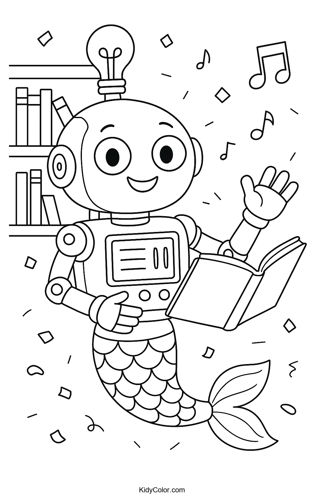 Explore a delightful adventure as your child colors this friendly robot with an open book. Perfect for sparking creativity and encouraging imaginative play, this coloring page offers a blend of technology and storytelling that kids will love.