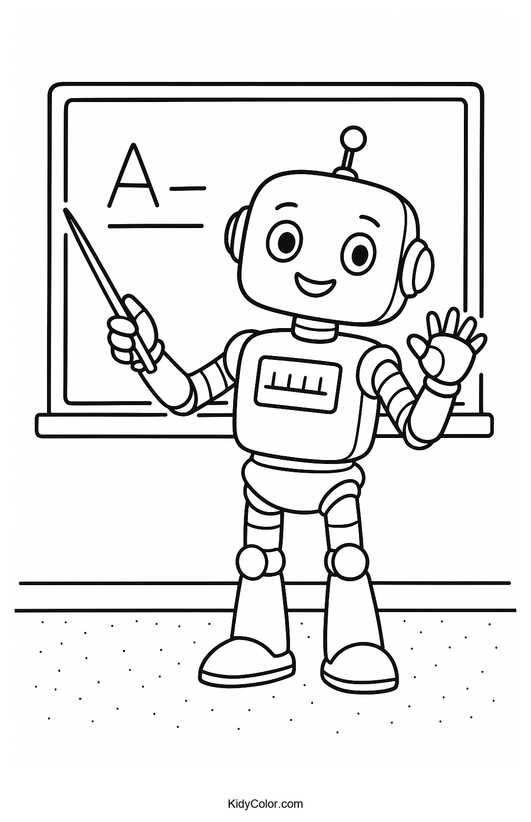 Explore creativity with this fun robot teacher coloring page! Kids will love adding color to this imaginative scene featuring a robot educator in a classroom setting, perfect for nurturing both imagination and fine motor skills.