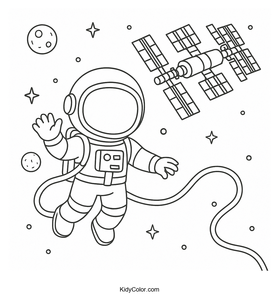 Explore the wonders of space with this astronaut floating amidst the stars. Perfect for young explorers, this coloring page is a fun way for kids to imagine being an astronaut while improving their creativity and color skills.