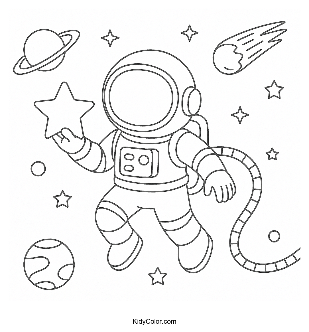 Explore the wonders of the universe with this fun and engaging astronaut in space coloring page. Kids will love bringing the star-filled backdrop and adventurous astronaut to life with their favorite colors.
