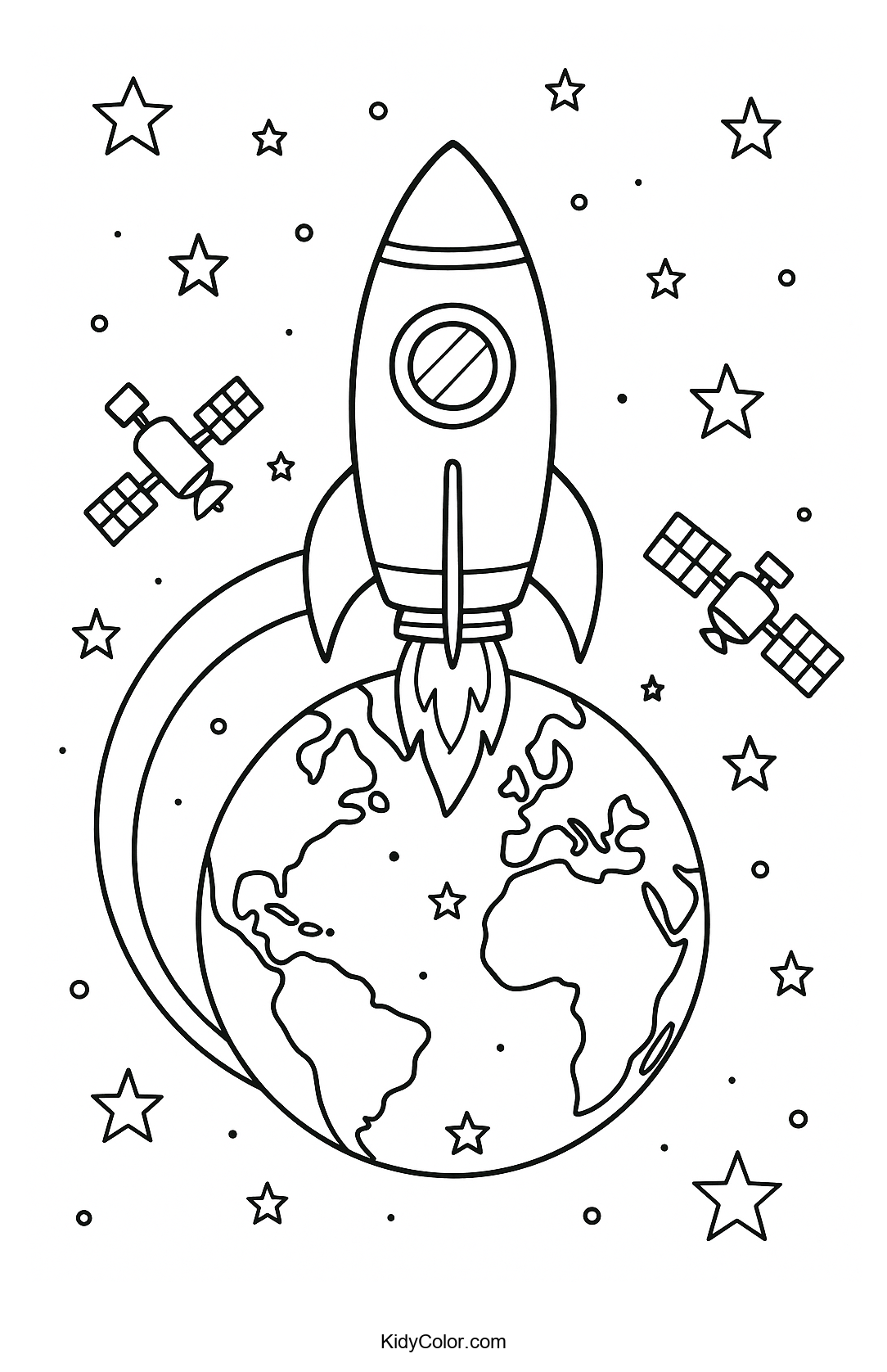 Blast off into a world of creativity with our Rocket in Orbit Coloring Page. Perfect for young space enthusiasts, this page features a dynamic scene of a rocket soaring through space alongside mesmerizing satellites. Ideal for sparking imaginative play while coloring!